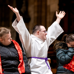 Rund um den "Welt-Down-Syndrom-Tag" am 21. März findet im Wiener Stephansdom ein besonderer Gottesdienst statt. Die Messe wird von Menschen mit Down-Syndrom und deren Familien gestaltet. Die musikalische Gestaltung übernehmen die Gruppen Faith4U&Me und Veeh-Harfen Saitensalat. Wir waren mit der Kamera dabei.