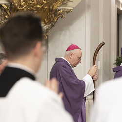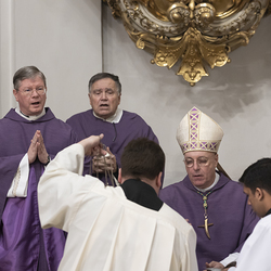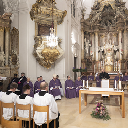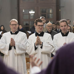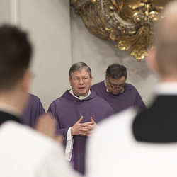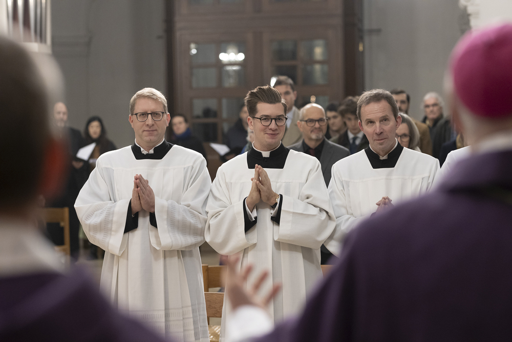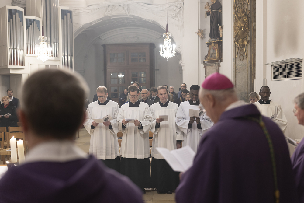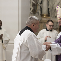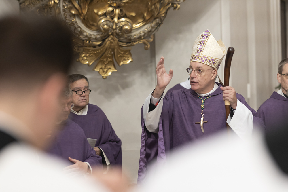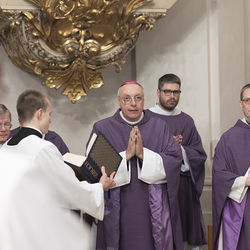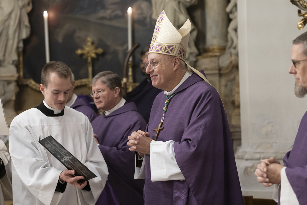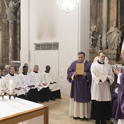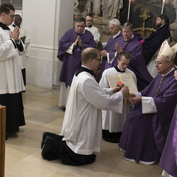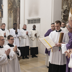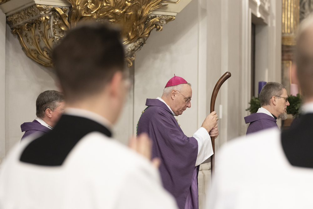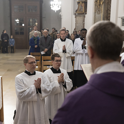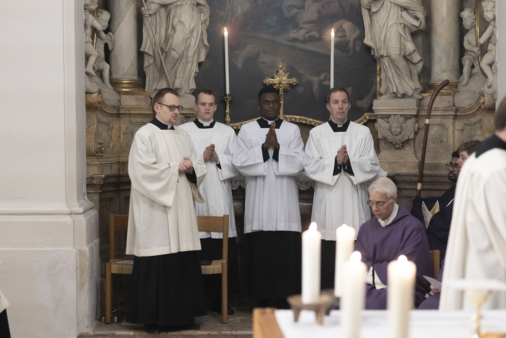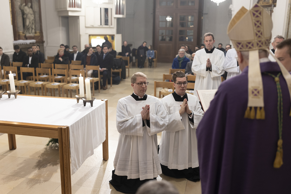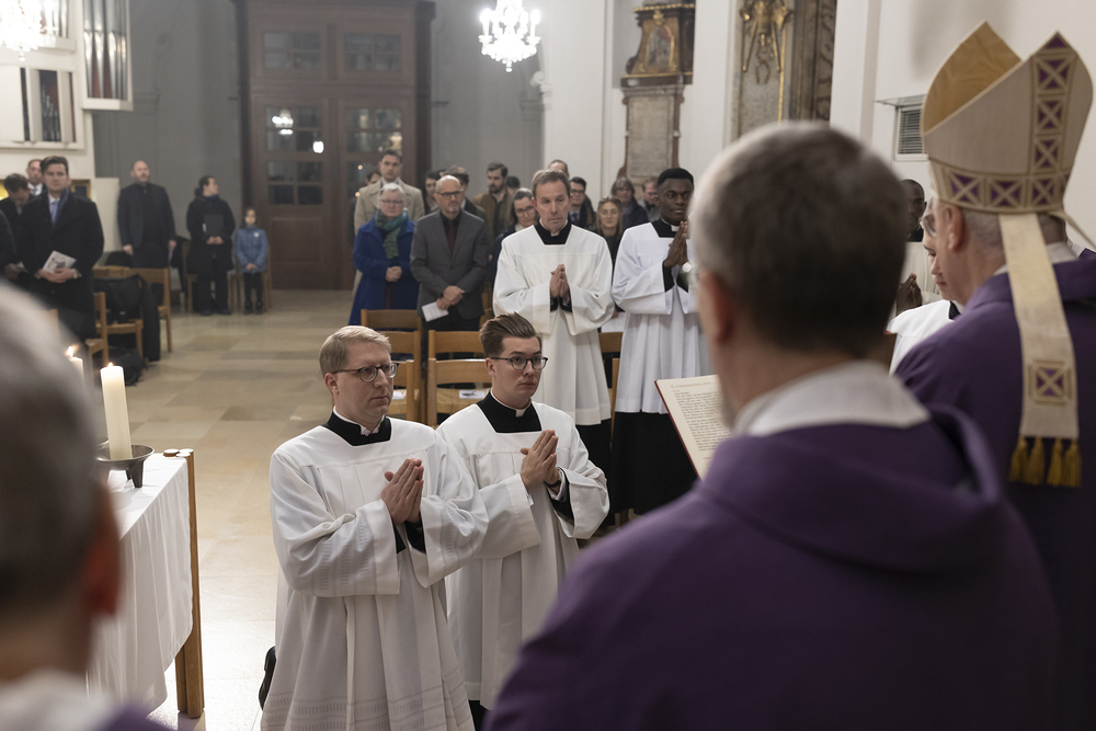 Beauftragungsfeier von Wiener Priesterseminaristen zum Akolythat und Lektorat durch Bischof Ägydius in der Seminarkirche des Priesterseminars.