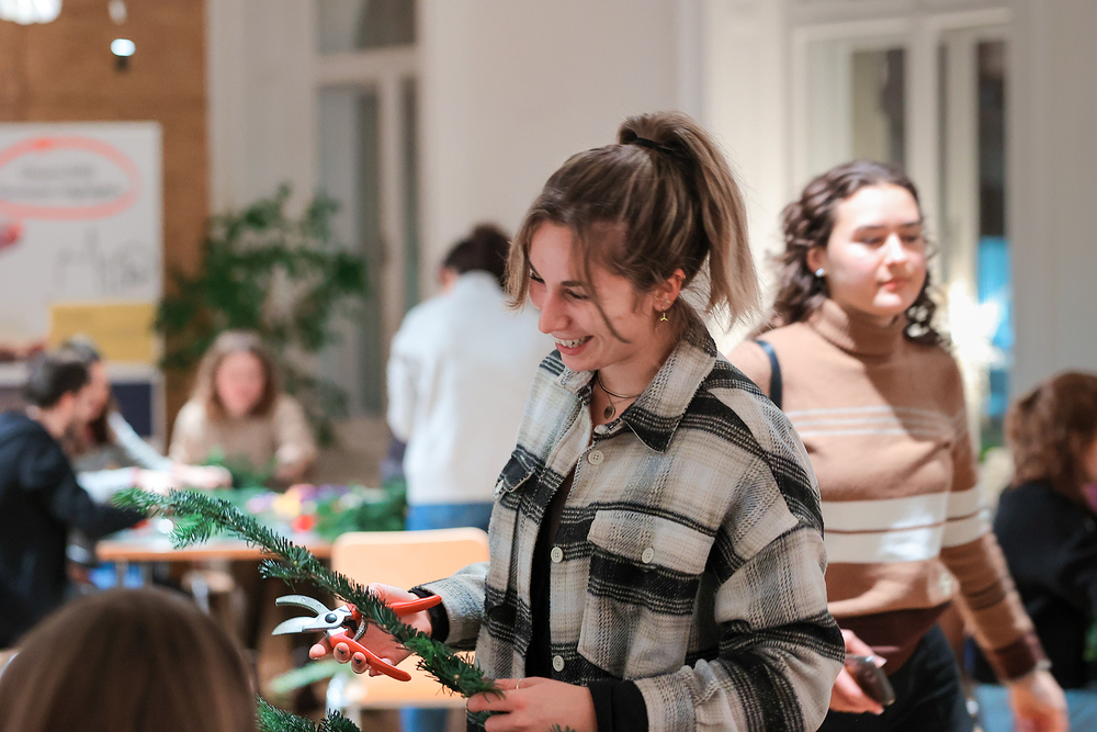 Gefüllt mit Tannenduft und über 160 Studierenden hat in sämtlichen Räumlichkeiten der Katholischen Hochschulgemeinde das beliebte KHG-Adventkranzbinden stattgefunden. Ob kirchenfern oder glaubensbegeistert: bunt durchmischt konnte man plaudern und sich bei Glühwein, Mandarinen und adventlicher Musik auf diese besondere Zeit der Erwartung einstimmen.